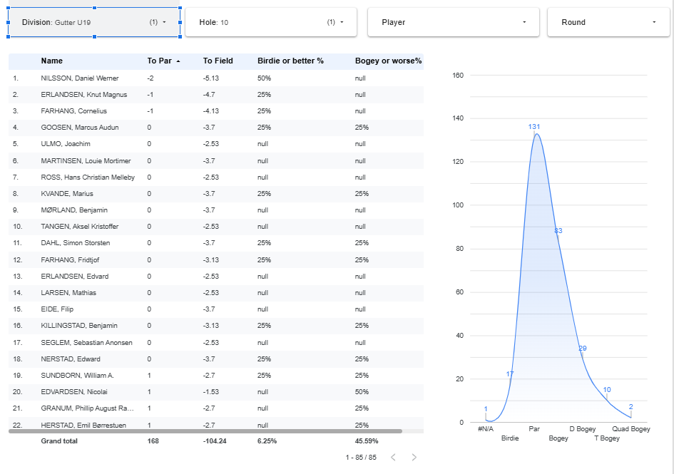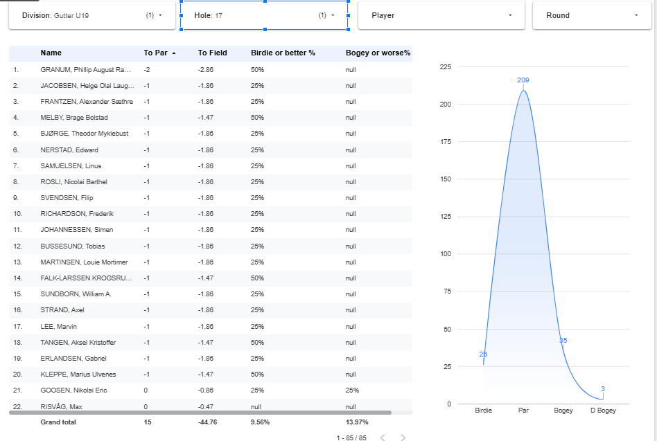 My home club, Haga Golf Club, is hosting the Norwegian Championships this week. Haga also hosted last year’s Norwegian junior championship. In an effort to point out pivotal holes on the course, one of the players I coach, Petter Dale, ran all of the numbers from that junior championship.