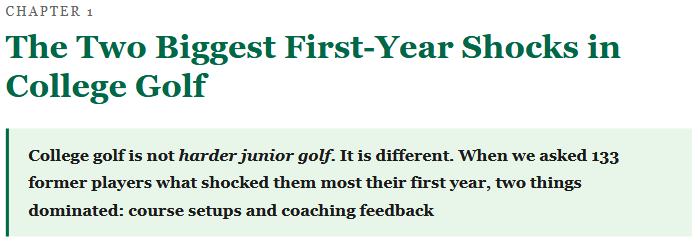 This is Chapter 1 of 16. Next week: Open-Ended Recruiting Advice from 133 Former College Golfers - the ten themes that came up over and over again when we asked them what they wish they'd known.