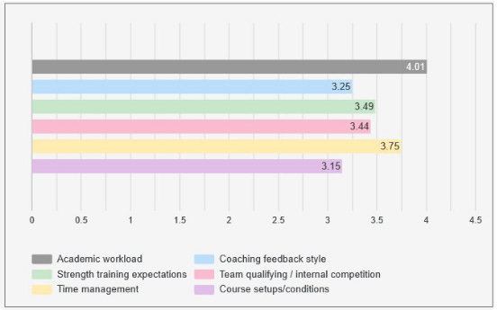 Women were also the least prepared for the Course setups/conditions they faced, but struggled more with Team qualifying and the internal competition they faced.